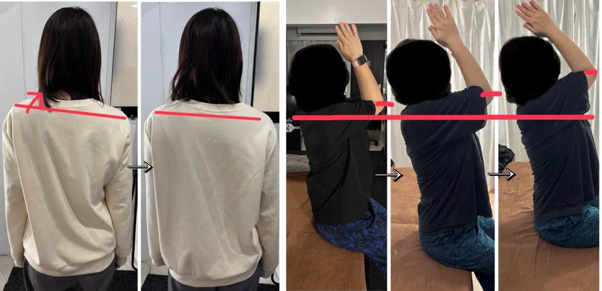 肩甲骨が本来の位置に戻り、呼吸がしやすくなったのも印象的です。